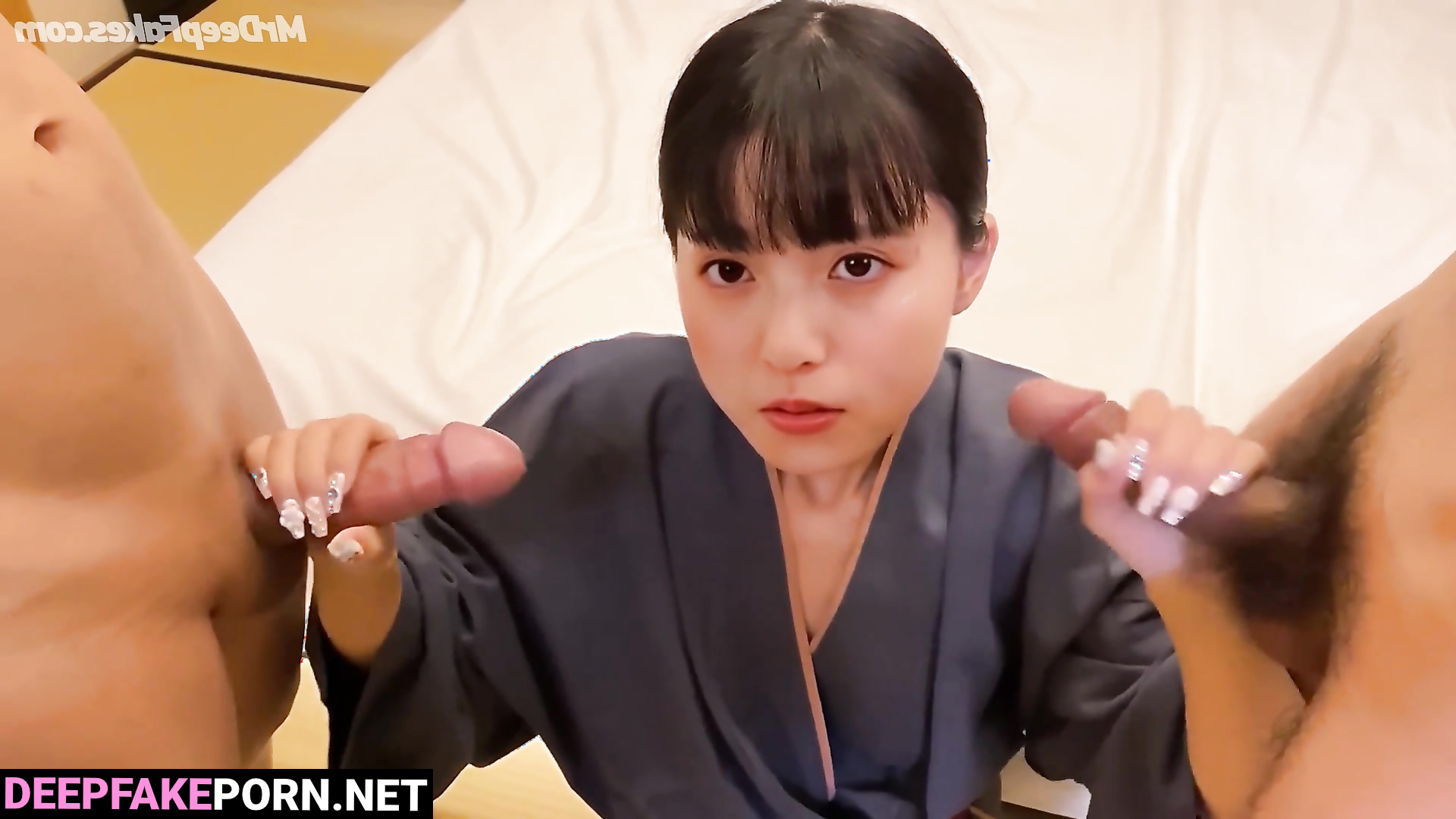 Fake Asuka Saito (齋藤 飛鳥 乃木坂46) making double handjob